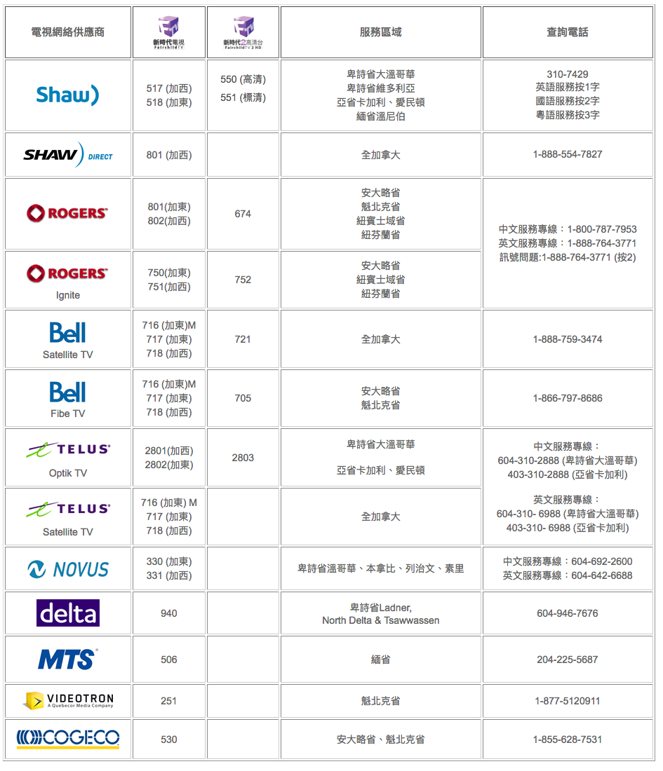 由即日起,只要閣下為Telus、Shaw、及Bell電視用戶,即可免費收看新時代電視、新時代2高清台,及城市電視
