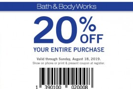 憑優惠券到Bath & Body Works購物可享八折優惠 請按此下載優惠券 截止日期:2019年8月18日 請留意,需使用Facebook賬戶方可享此優惠!...