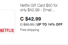 $50 Netflix Gift Card只賣$42.99,Gift Card以電郵發放,不用任何運費 詳情請按此瀏覽ebay.ca網頁 售完即止 *需以PayPal Checkout,每人只限購買一張...