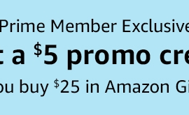 Amazon:購買$25 Amazon Gift Card可獲$5 Credit (只限Amazon Prime會員)