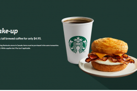 Starbucks:早餐 + 滴漏咖啡只需$4.95