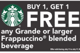 Starbucks:任何Frappuccino可享買一送一優惠 (只限Safeway內的Starbucks)