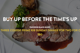 [逾期]Black+Blue餐廳推出最新優惠,顧客可以$80購買原價為$145的Prime Rib + 雪蟹二人套餐,套餐包含: 兩杯紅/白酒 + 凱撒沙律 兩份10oz Prime Rib + 老虎蝦 甜品 詳情請按此閱覽Glowbal網頁 購...