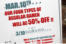 [逾期]3月10日為「山頭火日」,位於Downtown及West Broadway的山頭火拉麵推出4款拉麵半價優惠! 詳情請瀏覽山頭火拉麵Facebook網頁 (Robson街、West Broadway) 只限2018年3月10日一天或售完即止 地址: Robso...