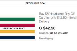 [sold out]ebay.ca:$50 Hudson’s Bay Gift Card只賣$42.50