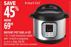 [逾期]Canadian Tire Black Friday優惠:Instant Pot電子壓力煲只賣$69.99 詳情及門市存貨數量請按此閱覽Canadian Tire網頁 另外,Rexall現正以九折發售Canadian Tire Gift Card 只限2017...