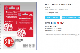 [逾期]Shoppers Drug Mart推出最新優惠,購買Boston Pizza禮券(Gift Card),即可獲八折優惠 截止日期:2018年6月15日或售完即止 ...