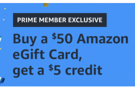 Amazon:購買$50 Amazon eGift Card可獲$5 Promotional Credit (只限Amazon Prime會員)