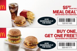 McDonald's推出coupon優惠,包括: 買一個包類,第二個包類免費