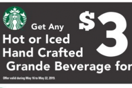 感謝網友Andre報料!只要於到位於Safeway內的Starbucks購買中杯裝飲品只需$3 截止日期:2019年5月22日