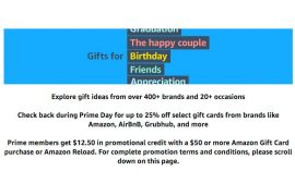 Amazon:購買$50 Amazon Gift Card可獲$12.50 Credit (只限Amazon Prime會員)