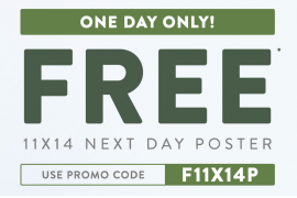 Walmart推出最新優惠:免費11x14 Poster沖晒。相片經Walmart網站上載,沖晒後可於Walmart提取,不用郵費。需使用promo code 「F11X14P」 請按此瀏覽Walmart網站 截止日期:2022年6月17日或額滿即止