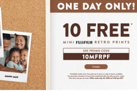 Walmart推出最新優惠:免費十張Mini Retro Print相片沖晒。相片經Walmart網站上載,沖晒後可於Walmart提取,不用郵費。需使用promo code 「10MFRPF」 請按此瀏覽Walmart網站及閱覽優惠細節 截止日期:2022年7月29日或額...