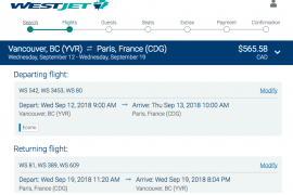 WestJet剛宣布推出巴黎航班,來回溫哥華及巴黎機票(需兩次轉機)價格,價錢連稅為$565.58,適用於大部分9至10月的日期 請按此進入WestJet網頁 建議大家可於Google Flights尋找合適日期 額滿即止
