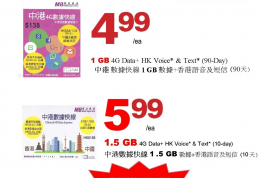 大阪超級市場:香港/中國手提電話Preloaded SIM CARD 1GB數據 + 通話(香港/中國共用) + 免費China One電話卡只需$4.99
