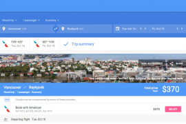 感謝網友Norman報料!來回溫哥華及冰島機票(連稅)只需 $369.41(於2018年10月16日出發、10月19日回程乘搭American Airlines,需轉機)。航班詳情如下: 請按此進入Google Flights網頁 請留意,網友可...