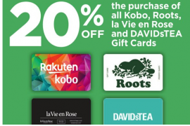 [逾期]Canadian Tire:购买David’s Tea/Roots/La Vie en Rose礼券(Gift Card),即可获八折优惠