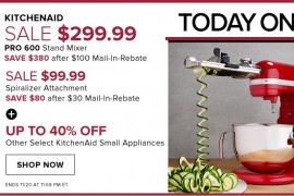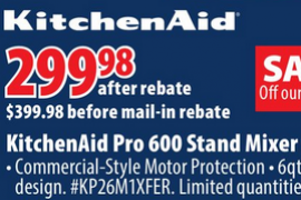 [逾期]the Bay:Kitchenaid Stand Mixer只卖$399.99 (+$100邮寄回赠)