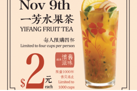 [逾期]位于Vancouver Cambie街的一芳台湾水果茶为庆祝开幕志庆,将于今日(11月9日)推出限时优惠:购买水果茶只需$2 详情请按此浏览一芳台湾水果茶Facebook网页 只限2018年11月9日或额满即止 地址:4020 Cambie St., Vancou...