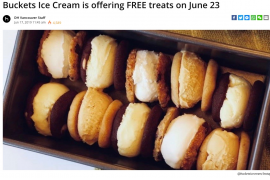 感谢网友Judy报料!位于Vancouver的Buckets Ice Cream为庆祝开幕两周年,将于星期日(6月23日)推出免费Mini Ice Cream Sandwich活动,只限首222个Mini Sandwich免费派发 请按此浏览Daily Hive网页有关此活动详...