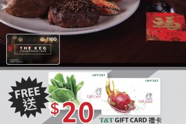 大统华超级市场:购买The Keg $100礼券(Gift Card),即可获$20大统华礼券