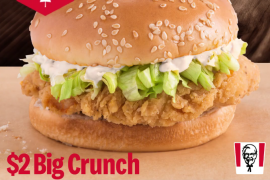 KFC推出限时优惠:Big Crunch鸡包只卖$2 详情请按此阅览KFC Facebook网页 只限2019年1月31日11am - 4pm