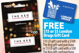 由2月1日(星期五)起,London Drugs推出最新优惠,购买$100 The Keg Gift Card可获$15 London Drugs礼物券 截止日期:2019年2月6日或售完即止...