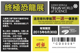 [逾期]凭优惠券购买Science World门票可获买一送一优惠 请按此阅览优惠详情及下载优惠券 截止日期:2015年6月30日...